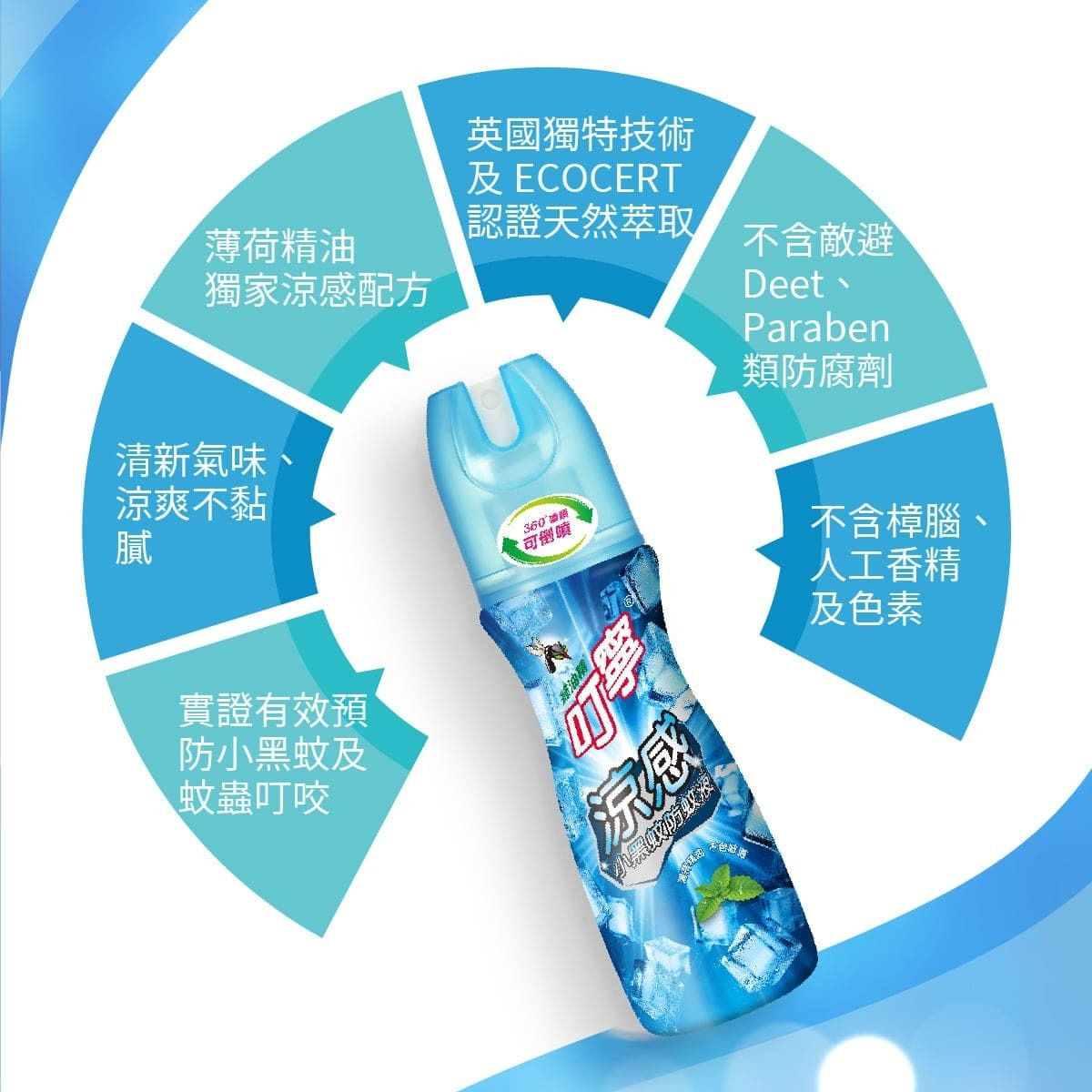 主成分:天然檸檬尤加利油、薄荷精油、薄荷醇